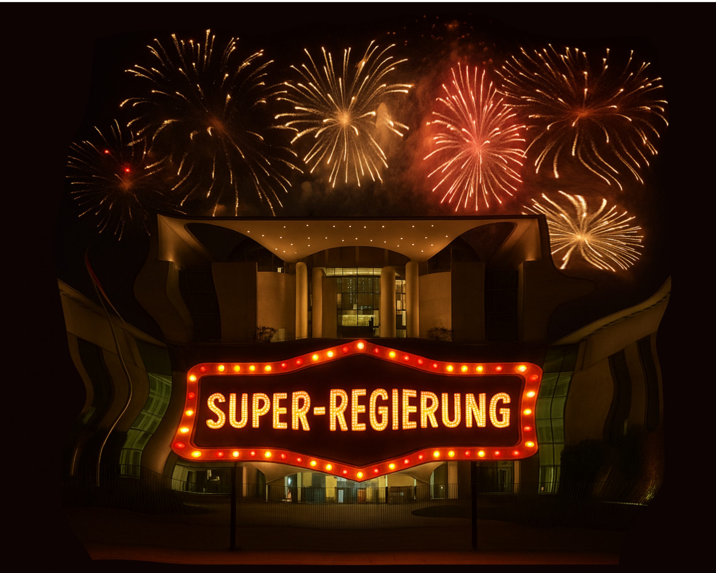 Zum einen sind die Auflösungserscheinungen bei der schieren Menge der Koalitionspartner nicht verwunderlich (sechs Parteien, vier KI-Projekte). Zum anderen versucht die Generationenpartei, als Wahlsieger, Kanzlerinnenpartei und größter Koalitionspartner, mit widersprüchlichen Zugeständnissen und Postenvergaben an die kleineren Partner die Wogen immer wieder zu glätten. Das reicht von einem massiven Klimaanpassungspolster für das Bündnis FFF über die Steuerbefreiung der realen und veganen und ewigen Weißwurst für die CSU bis hin zur ständigen verbalen Ehrung der Leistungen der Digitalen Demokat:innen. Mensch sollte meinen, bei so viel proaktiver Fürsorge muss die Sache rund laufen.